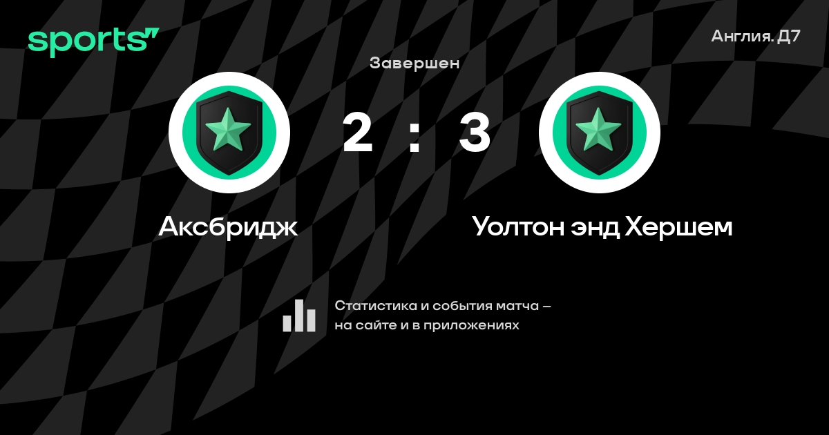 Результат прошлой игры в турнире «Д7. Нон-лиг Премьер-лига»: Уэймут – Аксбридж 0:0. После 19 туров Аксбридж набирает 29 очков и занимает 8 место в турнире. Аксбридж не может выиграть в 4 последних матчах в рамках турнира «Д7. Нон-лиг Премьер-лига». Уолтон энд Хершем имеет в активе больше всех побед в турнире – 15. В последних 5 играх Аксбридж забивает 5 голов. В последних 5 играх Аксбридж пропускает 8 голов.