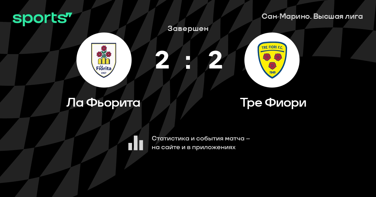 Результат прошлой игры в турнире «Высшая лига»: Пеннаросса – Ла Фьорита 0:5. После 10 туров Ла Фьорита набирает 17 очков и занимает 6 место в турнире. Лучший бомбардир команды – Жоао Фелипе Аффонсо Родригес: он забил 5 в 14 матчах. Ла Фьорита не проигрывает в 15 последних матчах в рамках турнира «Высшая лига». В 10 последних матчах в турнире «Высшая лига» Ла Фьорита обязательно забивает. Ла Фьорита больше всех забивает в турнире – 28 в 10. В последних 5 играх Ла Фьорита забивает 15 голов. В последних 5 играх Ла Фьорита пропускает 4 голов.