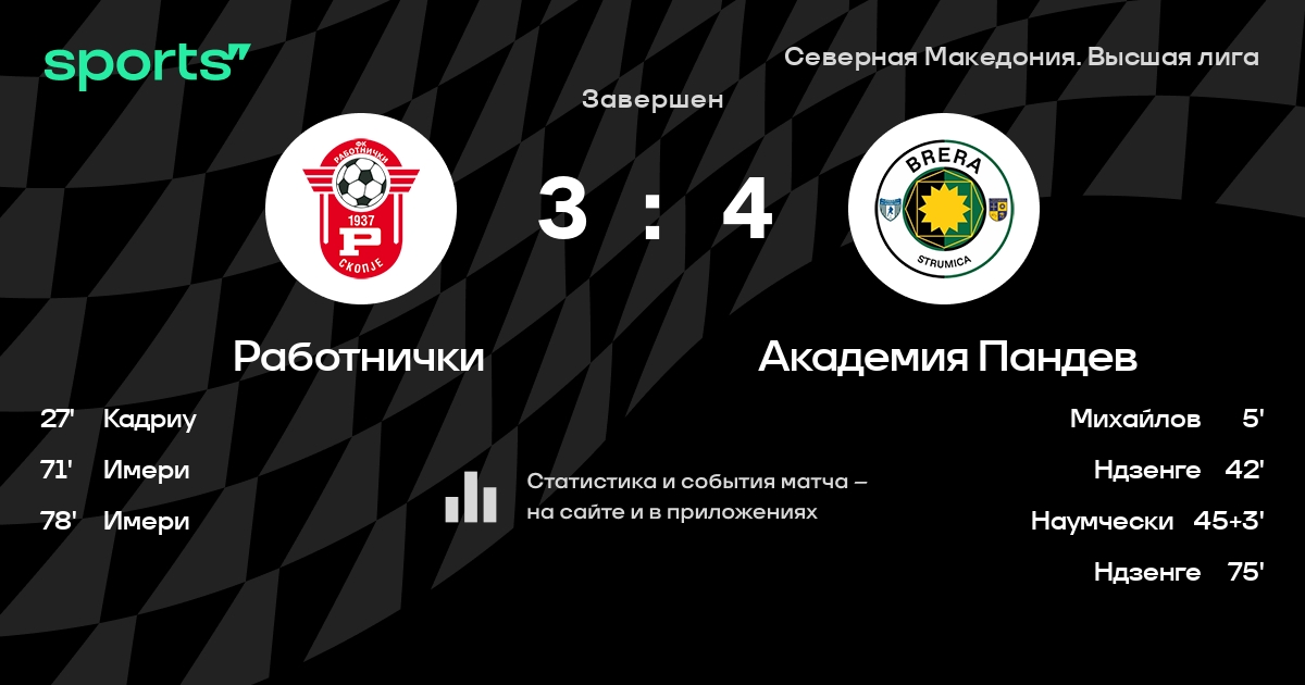 Работнички – Академия Пандев: Академия Пандев забивает в 4 последних матчах против этого соперника