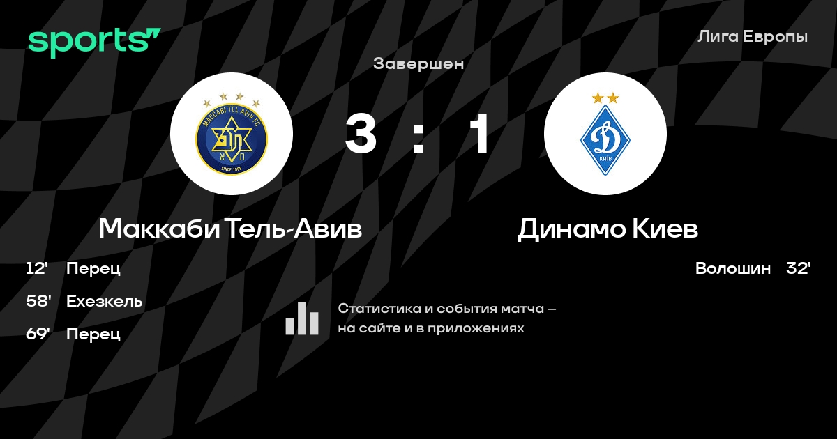 Лига Европы УЕФА: шансы «Маккаби Тель-Авив» и «Динамо Киев» на победу в матче плей-офф