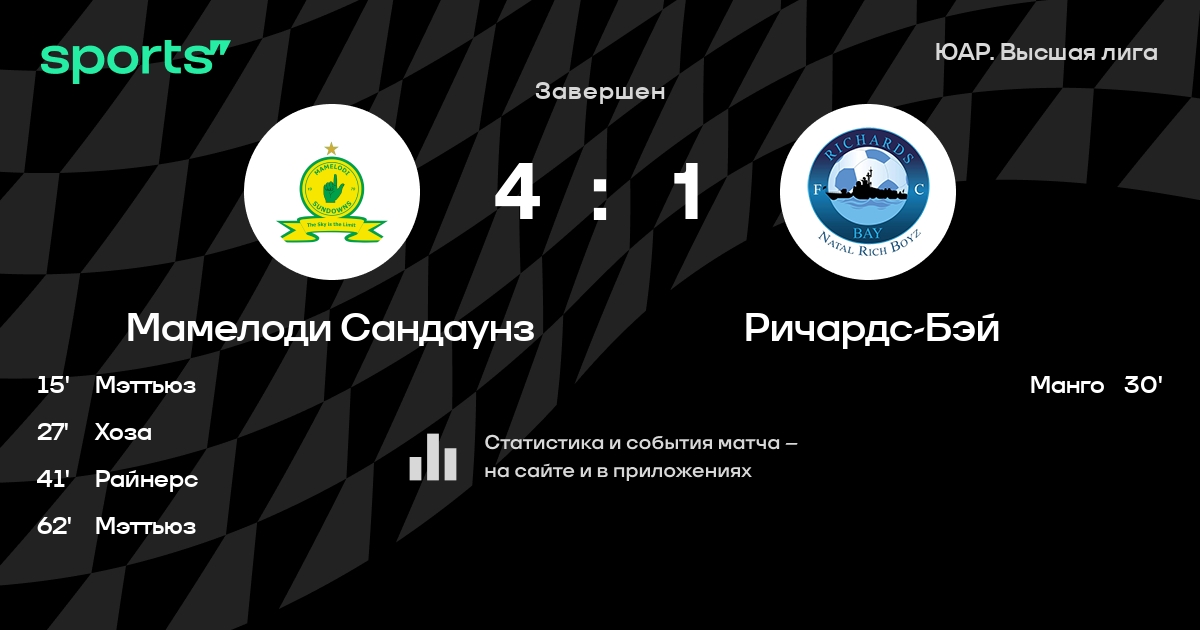 Мамелоди Сандаунз – Ричардс-Бэй: Мамелоди Сандаунз забивает в 8 последних матчах против этого соперника