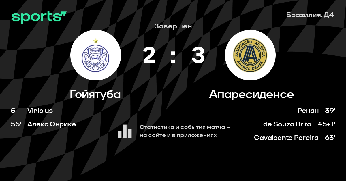 Результат прошлой игры в турнире «Серия D»: Сан-Жозе – Гойятуба 1:2. Гойятуба не проигрывает в 6 последних матчах в рамках турнира «Серия D». В 3 последних матчах в турнире «Серия D» Гойятуба обязательно забивает. В последних 5 играх Гойятуба забивает 5 голов. В последних 5 играх Гойятуба пропускает 2 голов.