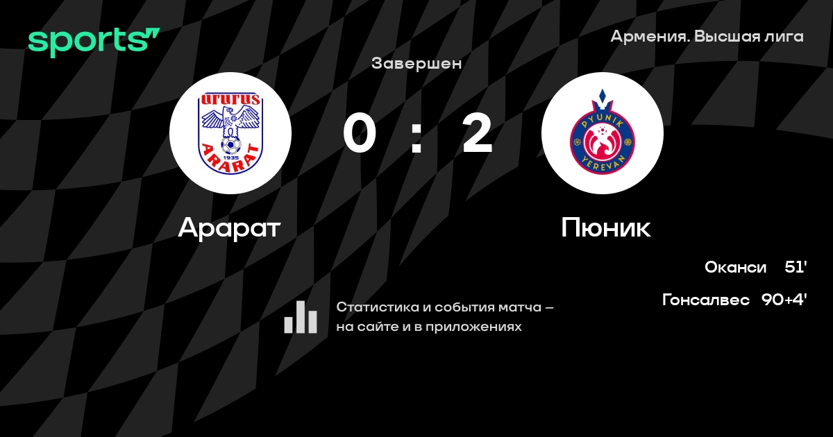 Арарат – Пюник: Пюник забивает в 10 последних матчах против этого соперника