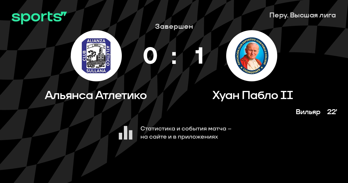 Результат прошлой игры в турнире «Примера»: Хуан Пабло II – Куско 0:0. После 18 туров Хуан Пабло II набирает 19 очков и занимает 14 место в турнире. Лучший бомбардир команды – Хосе Санчес: он забил 2 в 6 матчах. Хуан Пабло II играет вничью в 3 последних матчах в рамках турнира «Примера». В последних 5 играх Хуан Пабло II забивает 3 голов. В последних 5 играх Хуан Пабло II пропускает 8 голов.