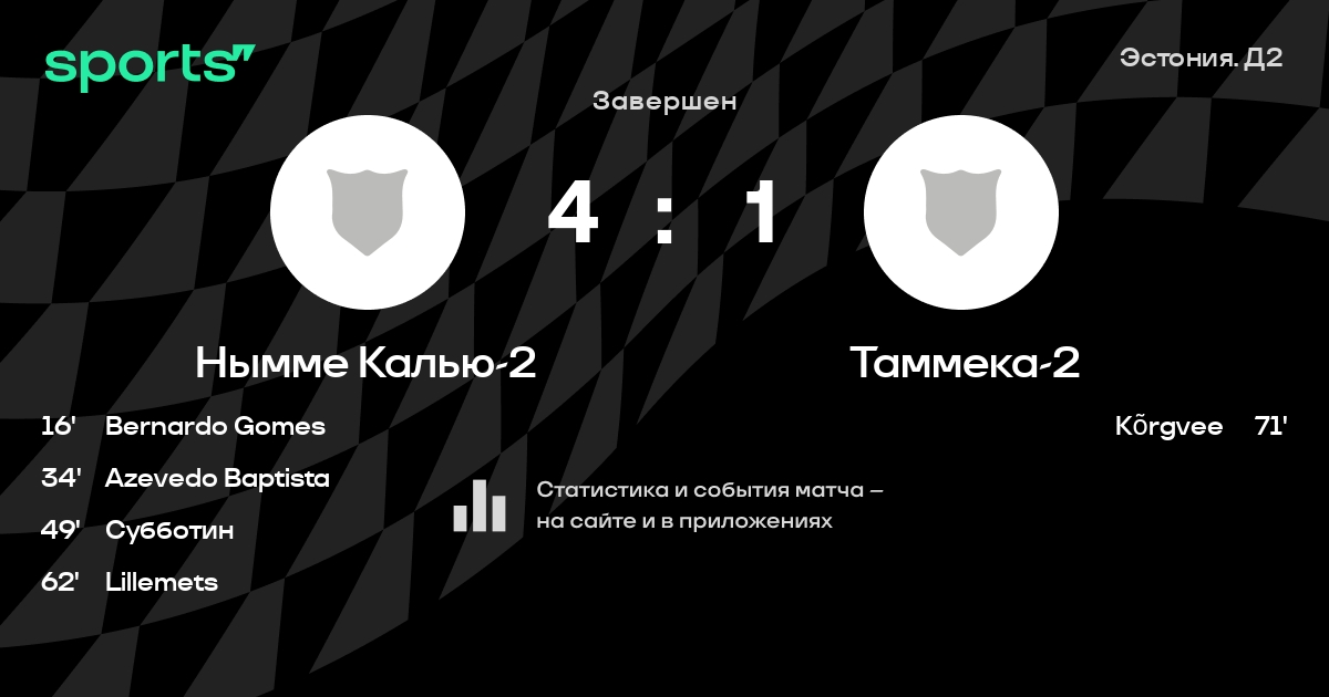 | 6 | Нымме Калью-2 | 35 | 13 | 6 | 16 | 56 | 75 | -19 | 45 | ||