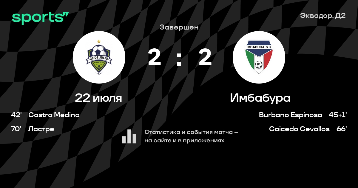 Patrik Shardel Minda Lara - Byron Yardel Carabalí Delgado, José Gregorio Corozo Castillo, Coronel Ayala, Oswaldo Marcelo Mantilla Pincay - Ariel Esteban Aguas Jaramillo, Пантоха, Cristhian Alexander Benalcazar Folleco, Ariel Fernando Alcívar Sánchez, Ronny Alfonso Caicedo Cevallos - Danny Marcelo Burbano EspinosaЗапасные: Maldonado Villalba, Juliadoza Fleitas, Arboleda Casierra, Mejía Jurado, Ocampo Da Silva, Yar Burbano, García Chalá, Cevallos Ponce, Espinoza Ferigra, Alcívar Vargas, Хименес, Lugo Cortez