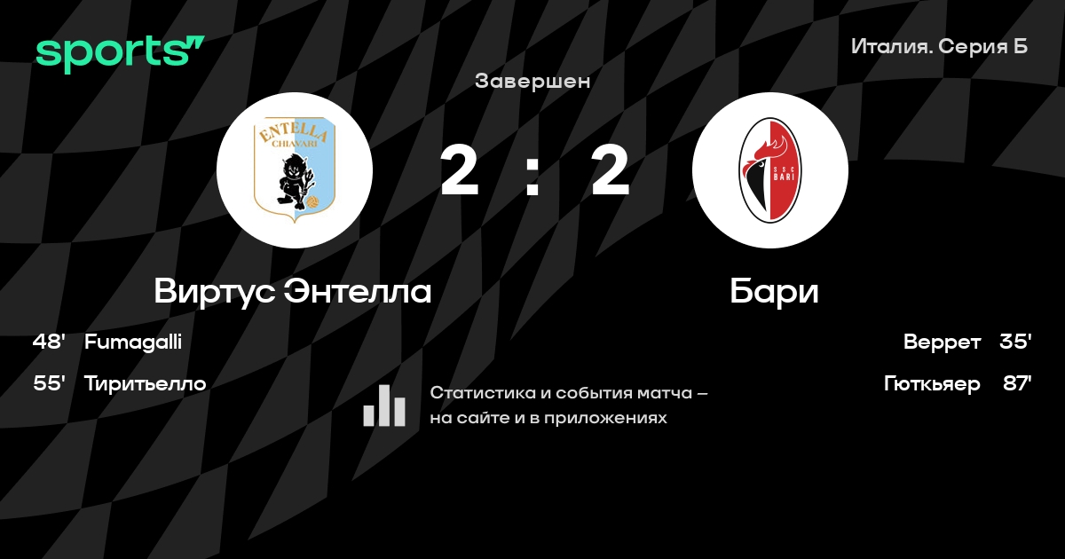 Виртус Энтелла – Бари: Виртус Энтелла не проигрывает в 6 из 8 последних матчей против этого соперника