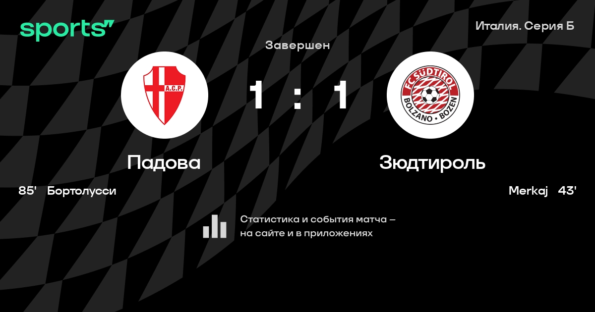 Результат прошлой игры в турнире «Серия B»: Специя – Падова 1:1. После 10 туров Падова набирает 13 очков и занимает 10 место в турнире. Лучший бомбардир команды – Маттия Бортолусси: он забил 5 в 11 матчах. Падова не проигрывает в 3 последних матчах в рамках турнира «Серия B». В 7 последних матчах в турнире «Серия B» Падова обязательно забивает. В последних 5 играх Падова забивает 7 голов. В последних 5 играх Падова пропускает 7 голов.