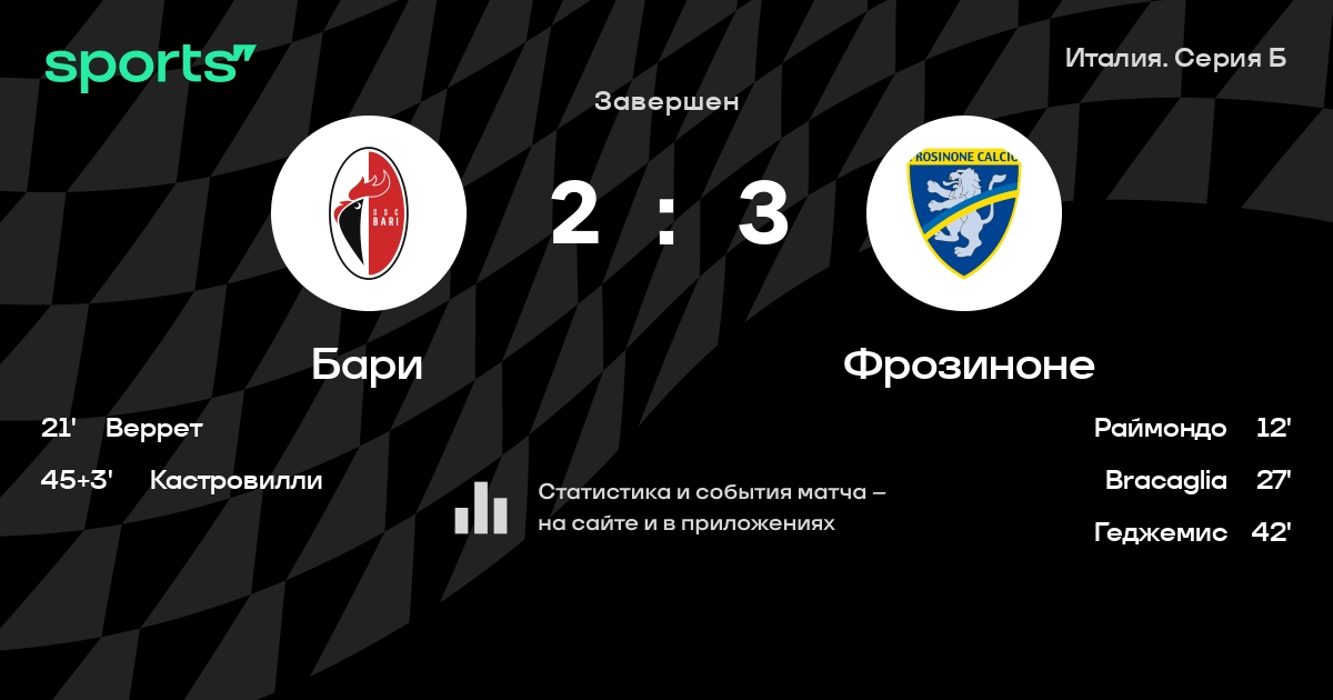 Бари – Фрозиноне: Бари побеждает в 3 последних очных матчах
