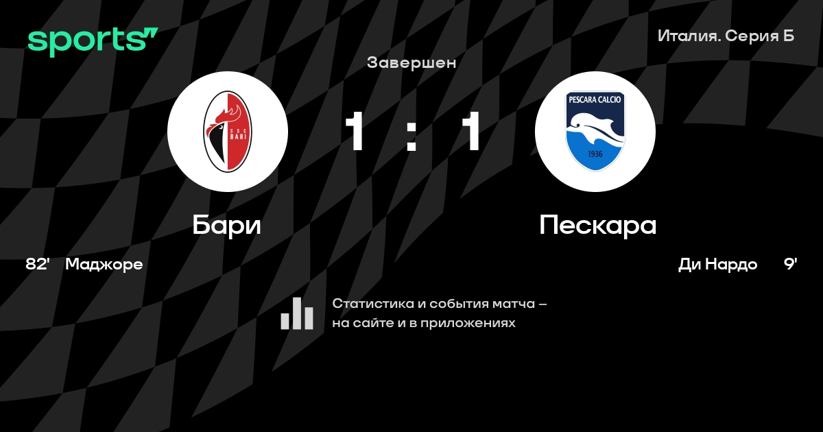 Результат прошлой игры в турнире «Серия B»: Юве Стабия – Бари 0:0. После 14 туров Бари набирает 14 очков и занимает 16 место в турнире. Лучший бомбардир команды – Габриэль Мончини: он забил 5 в 15 матчах. Бари не может выиграть в 4 последних матчах в рамках турнира «Серия B». В последних 5 играх Бари забивает 4 голов. В последних 5 играх Бари пропускает 9 голов.