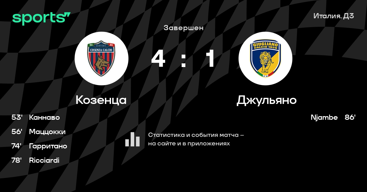 В последних 5 играх Козенца забивает в среднем 1.60 гола за игру