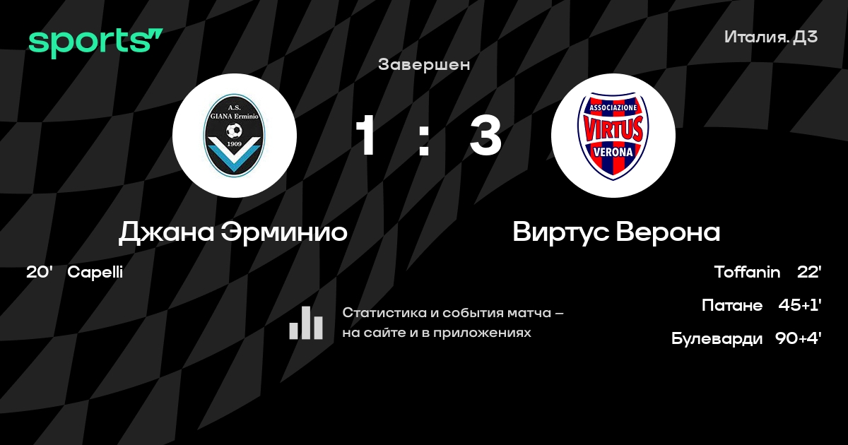 Джана Эрминио – Виртус Верона: Джана Эрминио не проигрывает в 10 последних матчах против этого соперника