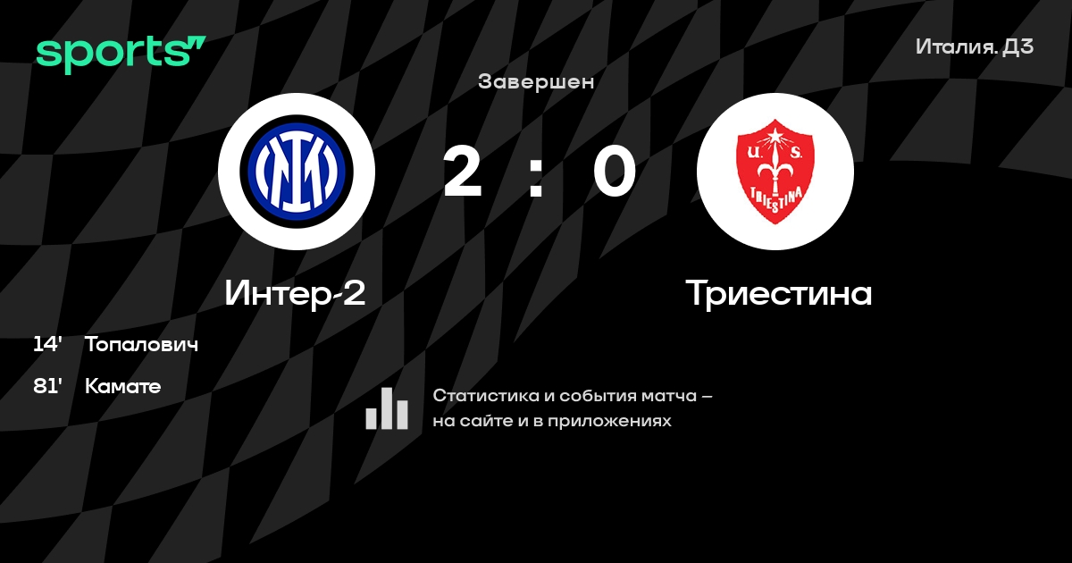Результат прошлой игры в турнире «Серия С»: Перголеттезе – Интер-2 0:2. После 5 туров Интер-2 набирает 8 очков и занимает 6 место в турнире. Лучший бомбардир команды – Антонино Ла Гумина: он забил 2 в 2 матчах. В последних 5 играх Интер-2 забивает 7 голов. В последних 5 играх Интер-2 пропускает 5 голов.