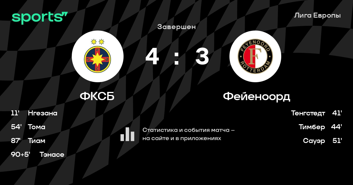Результат прошлой игры в турнире «Лига Европы»: Црвена Звезда – ФКСБ 1:0. После 5 туров ФКСБ набирает 3 очков и занимает 31 место в турнире. Лучший бомбардир команды – Флорин Тэнасе: он забил 9 в 28 матчах. ФКСБ проигрывает в 4 последних матчах в рамках турнира «Лига Европы». ФКСБ пропускает в 4 последних матчах в турнире «Лига Европы». В последних 5 играх ФКСБ забивает 3 голов. В последних 5 играх ФКСБ пропускает 6 голов.