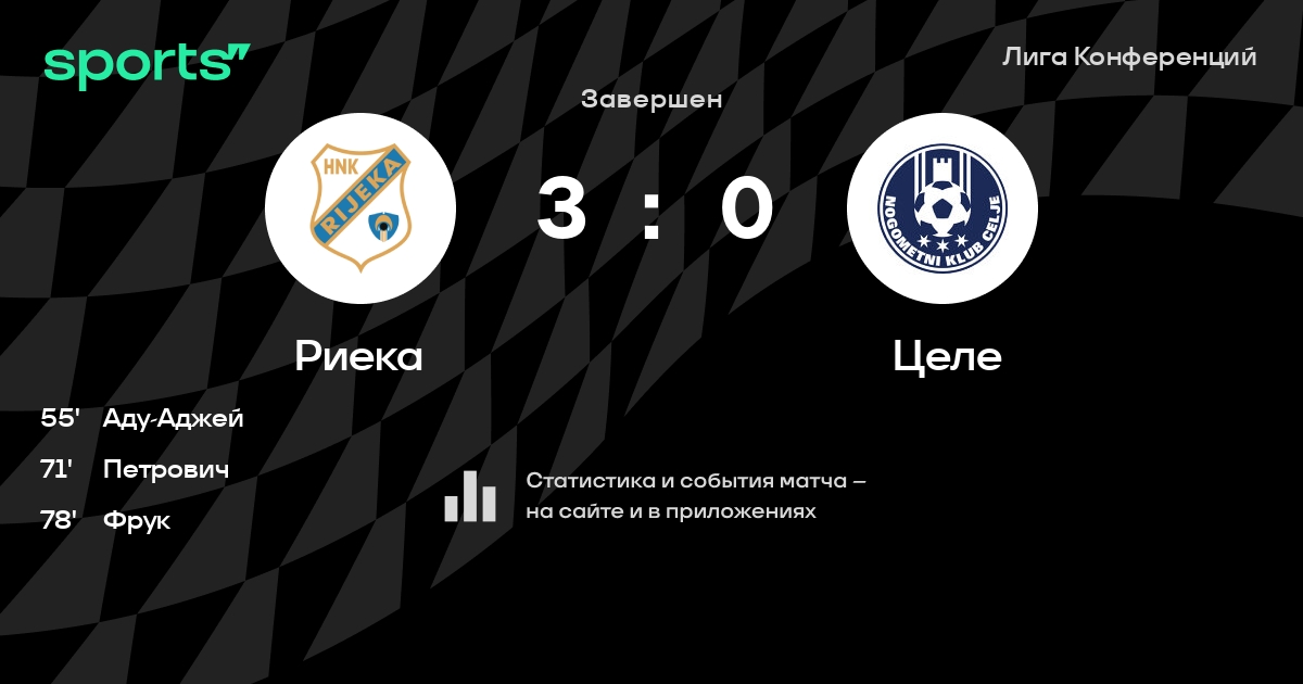 Лига конференций УЕФА: шансы Риеки и Целе на победу в матче 6 тура