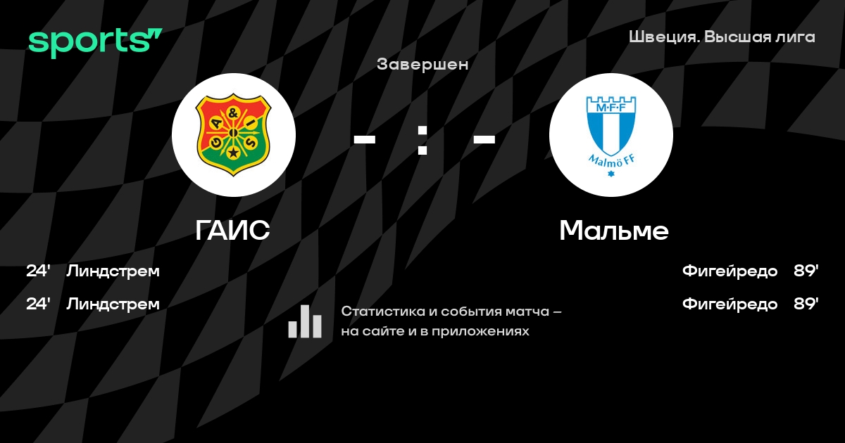 Мелихарек - Андерссон, Рикардиньо, Хальсти, Габриэл, Винсентс - Хамад, Перссон - Молинс, Ларссон, Офере