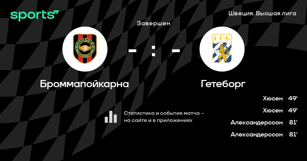 Лекстрем - Henriksson, Альборноз, Асп, Odelius, Karlsson - Альборноз, Петрович - Пиньонес-Арсе, Guterstam, Хаглунд