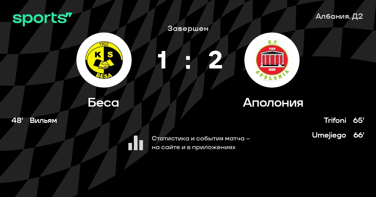 Беса – Аполония: Беса не проигрывает в 8 из 10 последних матчей против этого соперника