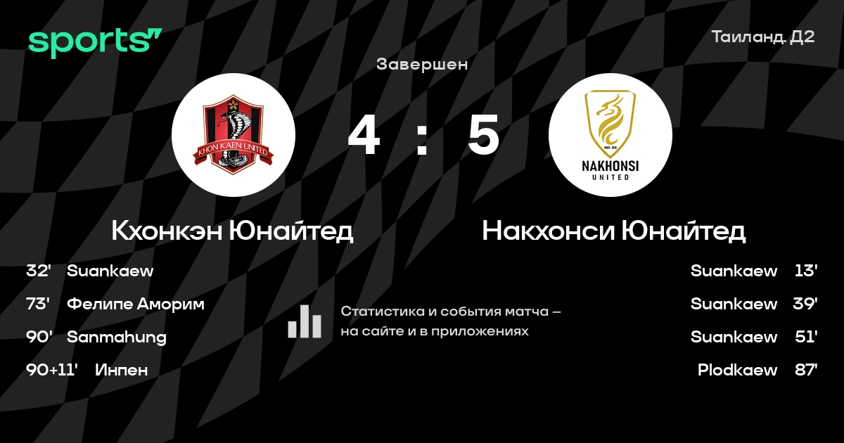 | 7 | Кхонкэн Юнайтед | 11 | 4 | 3 | 4 | 24 | 16 | +8 | 15 | ||