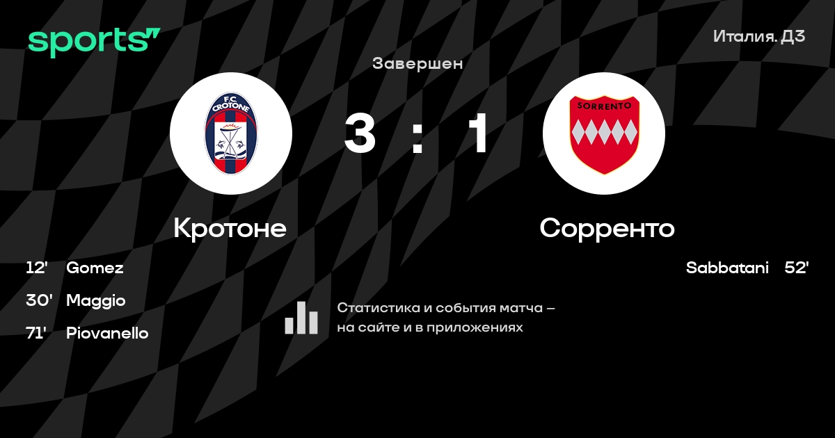 Кротоне – Сорренто: Сорренто забивает в 3 последних матчах против этого соперника