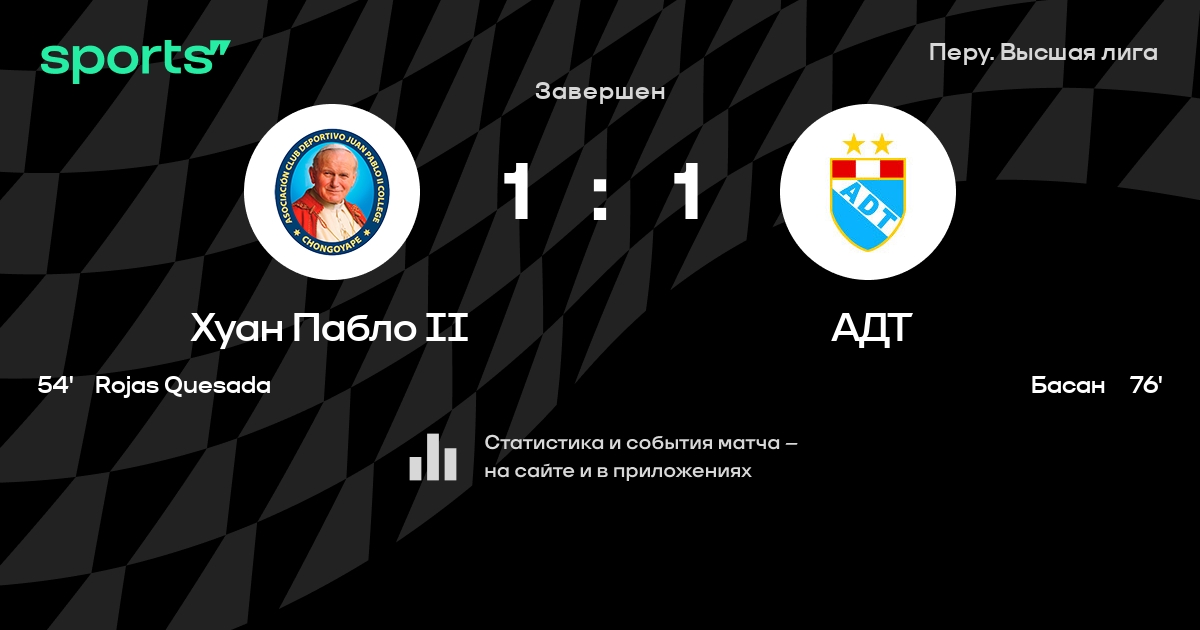 Результат прошлой игры в турнире «Примера»: Аякучо – Хуан Пабло II 2:1. После 18 туров Хуан Пабло II набирает 19 очков и занимает 14 место в турнире. Лучший бомбардир команды – Хосе Санчес: он забил 2 в 8 матчах. В последних 5 играх Хуан Пабло II забивает 2 голов. В последних 5 играх Хуан Пабло II пропускает 2 голов.