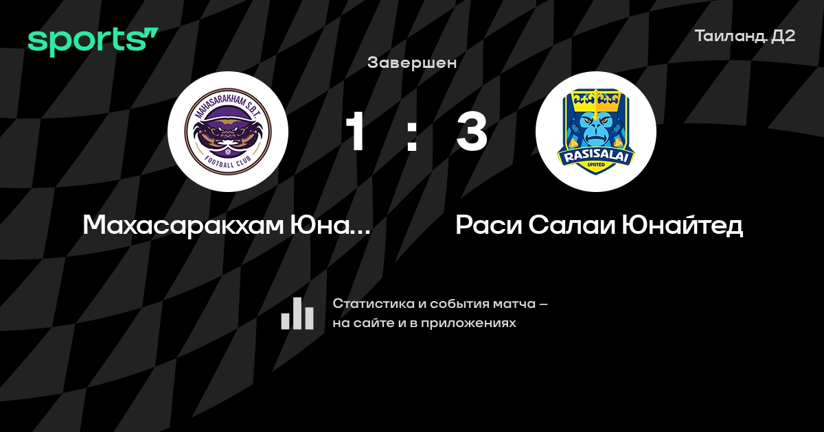 Результат прошлой игры в турнире «Лига 2»: Накхонпатхом Юнайтед – Махасаракхам Юнайтед 0:1. После 16 туров Махасаракхам Юнайтед набирает 23 очков и занимает 8 место в турнире. Лучший бомбардир команды – Deyvison: он забил 5 в 15 матчах. Раси Салаи Юнайтед имеет в активе больше всех побед в турнире – 11. В 7 последних матчах в турнире «Лига 2» Махасаракхам Юнайтед обязательно забивает. В последних 5 играх Махасаракхам Юнайтед забивает 12 голов. В последних 5 играх Махасаракхам Юнайтед пропускает 8 голов.
