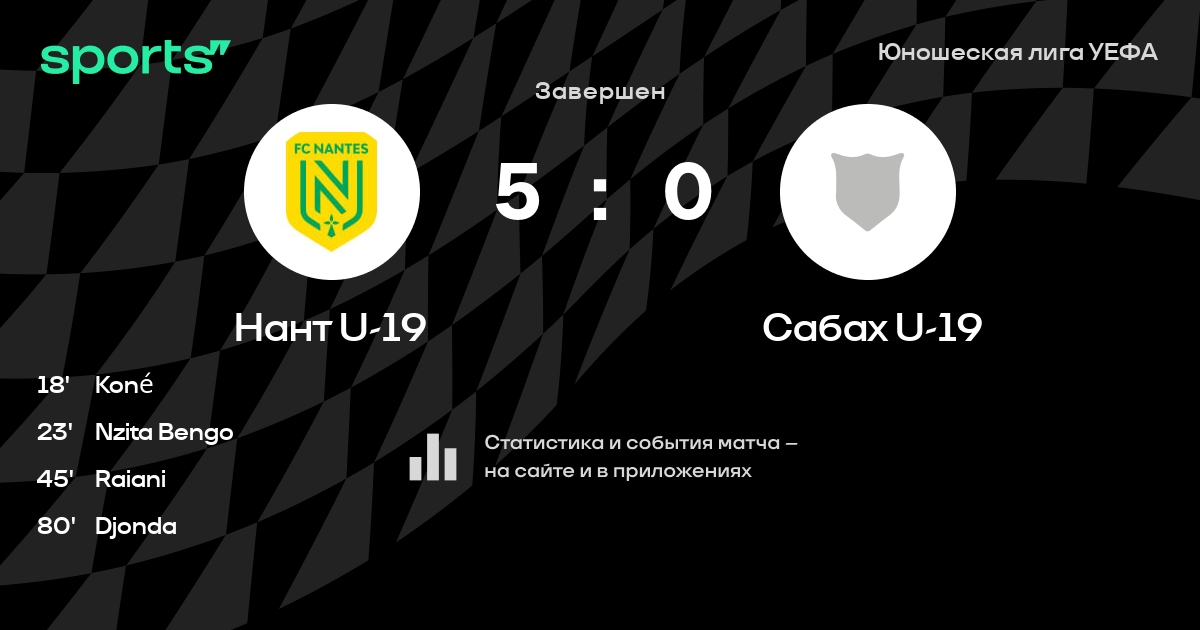 Результат прошлой игры в турнире «Юношеская лига УЕФА»: Олимпиакос U-19 – Нант U-19 0:0 (3:1). В последних 5 играх Нант U-19 забивает 7 голов. В последних 5 играх Нант U-19 пропускает 7 голов.