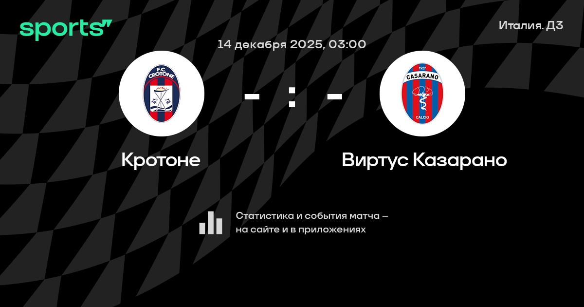 Результат прошлой игры в турнире «Серия С»: Кавезе – Кротоне 1:0. После 11 туров Кротоне набирает 17 очков и занимает 6 место в турнире. Лучший бомбардир команды – G. Gomez: он забил 6 в 5 матчах. В последних 5 играх Кротоне забивает 6 голов. В последних 5 играх Кротоне пропускает 3 голов.