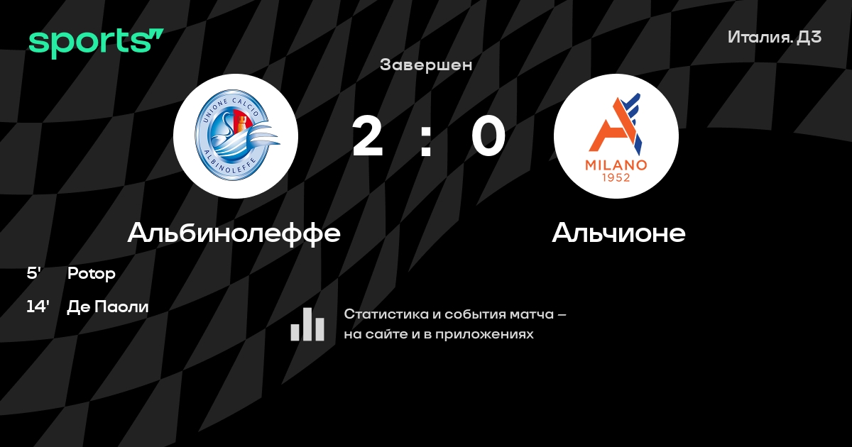 Результат прошлой игры в турнире «Серия С»: Триестина – Альбинолеффе 5:2. После 18 туров Альбинолеффе набирает 18 очков и занимает 16 место в турнире. Лучший бомбардир команды – Алессандро Ломбарди: он забил 3 в 13 матчах. Альбинолеффе не может выиграть в 4 последних матчах в рамках турнира «Серия С». В последних 5 играх Альбинолеффе забивает 6 голов. В последних 5 играх Альбинолеффе пропускает 8 голов.