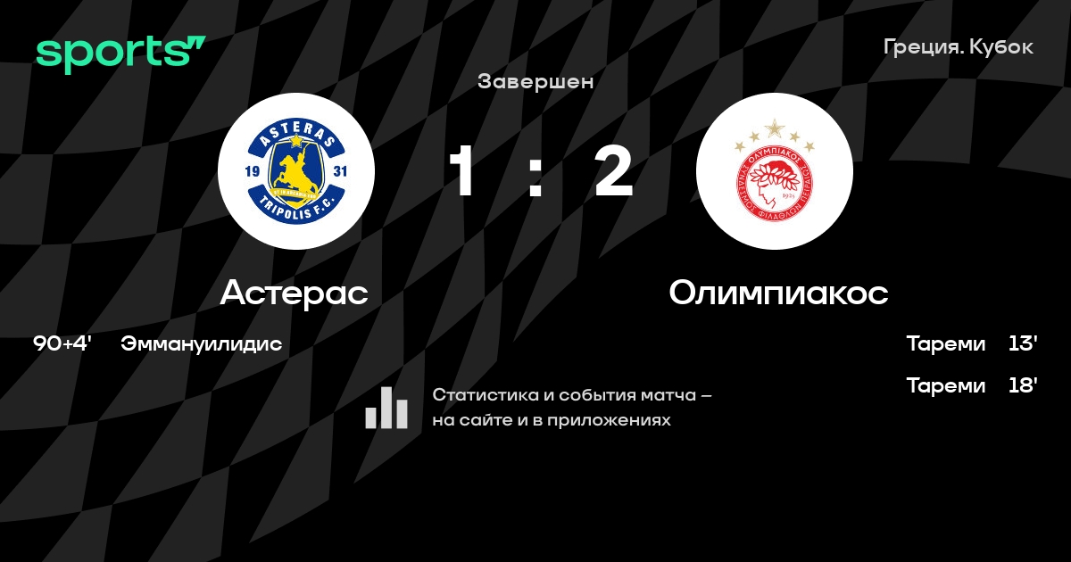 Астерас – Олимпиакос: Олимпиакос не проигрывает в 28 из 30 последних матчей против этого соперника