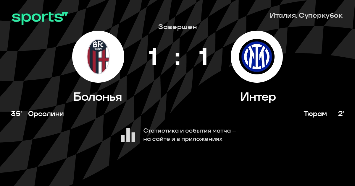 Суперкубок Италии: шансы «Болоньи» и «Интера» на победу в полуфинале Суперкубка Италии
