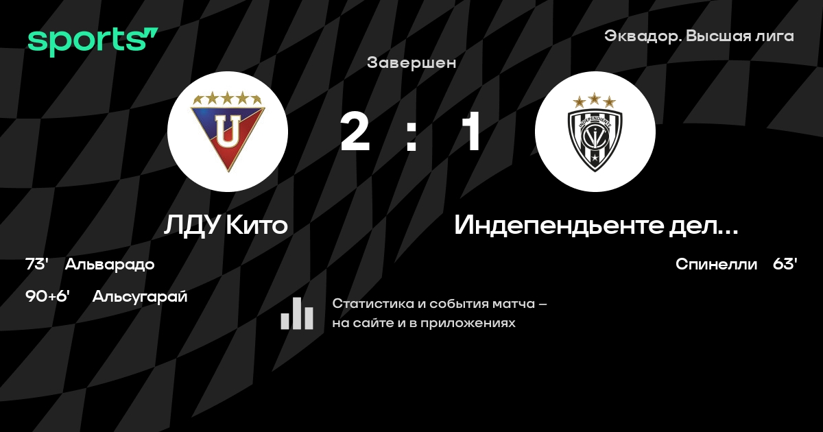 Результат прошлой игры в турнире «Серия A»: Барселона Гуаякиль – ЛДУ Кито 2:2. После 35 туров ЛДУ Кито набирает 62 очков и занимает 2 место в турнире. Лучший бомбардир команды – Лисандро Альсугарай: он забил 12 в 42 матчах. ЛДУ Кито не проигрывает в 6 последних матчах в рамках турнира «Серия A». Индепендьенте дель Валье имеет в активе больше всех побед в турнире – 21. В 9 последних матчах в турнире «Серия A» ЛДУ Кито обязательно забивает. В последних 5 играх ЛДУ Кито забивает 12 голов. В последних 5 играх ЛДУ Кито пропускает 7 голов.