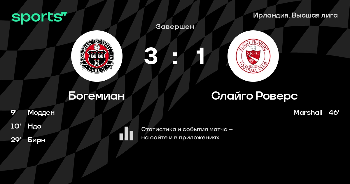 Шлингерманн - Кендрик, Кин, Da Silva Almeida - Боко, Marshall, Райан, O'Grady, Минан - Дойл