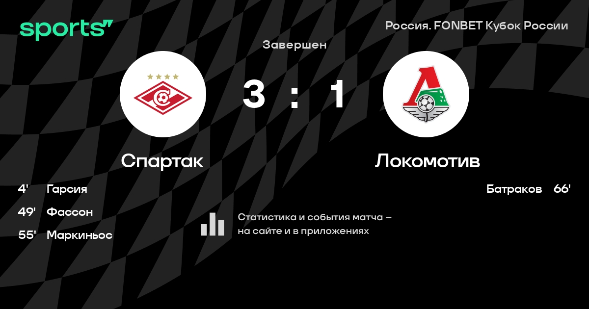 Кубок России: шансы «Спартака» и «Локомотива» на победу в первом матче 1/4 финала Пути РПЛ