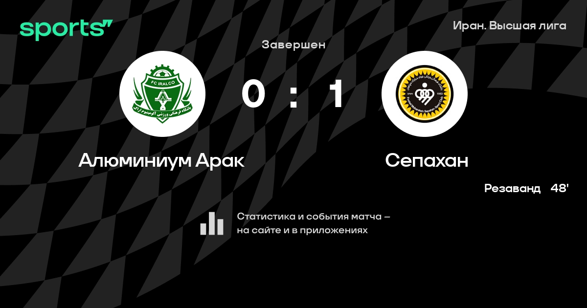 Результат прошлой игры в турнире «Высшая лига»: Фулад – Алюминиум Арак 0:0. После 12 туров Алюминиум Арак набирает 15 очков и занимает 10 место в турнире. Лучший бомбардир команды – R. Jafari: он забил 2 в 11 матчах. Алюминиум Арак не может выиграть в 5 последних матчах в рамках турнира «Высшая лига». Сепахан имеет в активе больше всех побед в турнире – 6. В последних 5 играх Алюминиум Арак забивает 2 голов. В последних 5 играх Алюминиум Арак пропускает 5 голов.