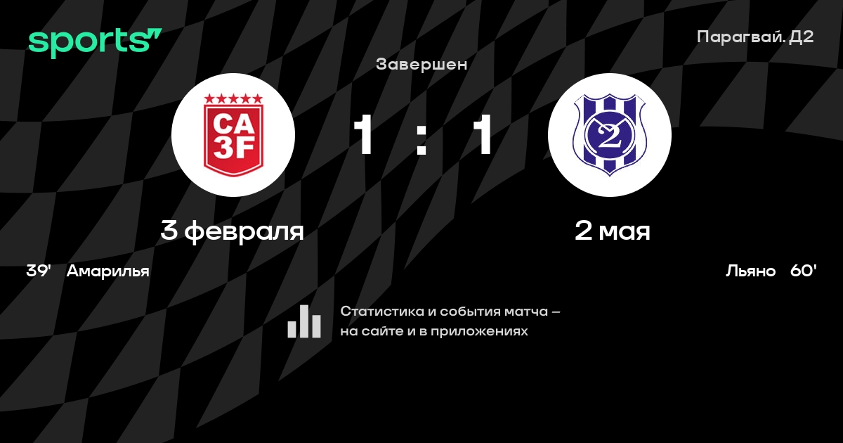 Результат прошлой игры в турнире «Сегунда»: Хенераль Мартин Ледесма – 3 февраля 3:3. После 27 туров 3 февраля набирает 32 очков и занимает 11 место в турнире. Лучший бомбардир команды – Уго Сандоваль: он забил 8 в 19 матчах. 3 февраля не может выиграть в 6 последних матчах в рамках турнира «Сегунда». 3 февраля пропускает в 13 последних матчах в турнире «Сегунда». В последних 5 играх 3 февраля забивает 5 голов. В последних 5 играх 3 февраля пропускает 9 голов.