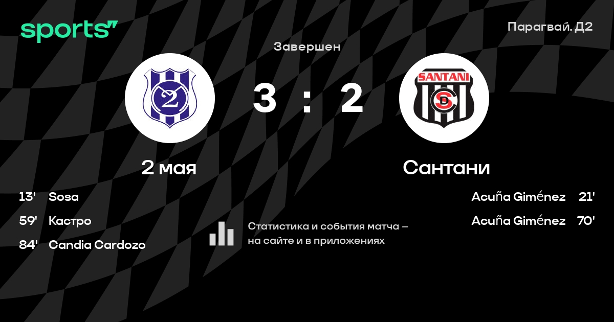 2 мая – Сантани: Сантани не проигрывает в 7 из 9 последних матчей против этого соперника