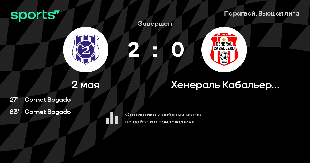 2 мая – Хенераль Кабальеро ХЛМ: Хенераль Кабальеро ХЛМ не проигрывает в 7 из 9 последних матчей против этого соперника