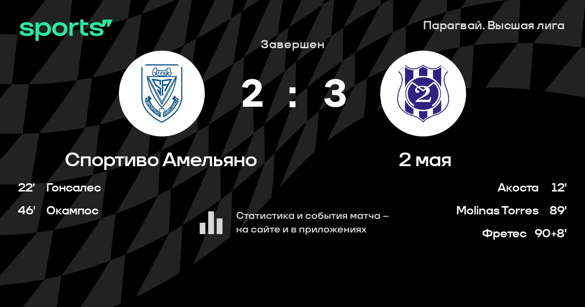Спортиво Амельяно – 2 мая: 2 мая не проигрывает в 6 из 8 последних матчей против этого соперника