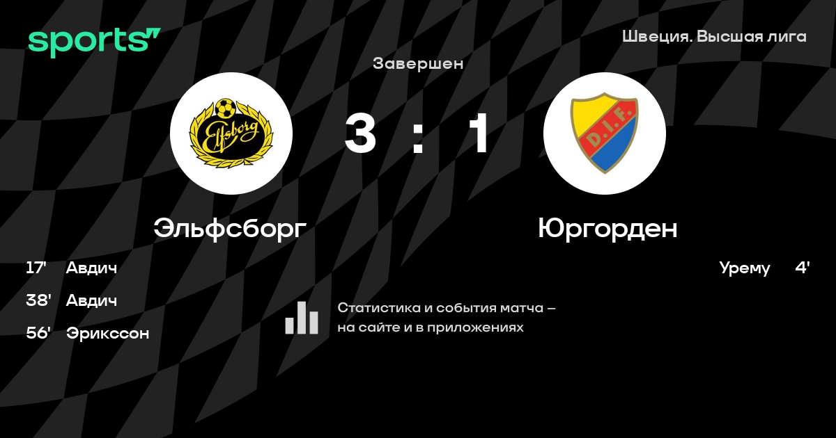 Чович - Викстрем, Лучич, Мобек, Карлссон, Флорен - Байрами, Свенссон, Эрикссон - Авдич, ДжавоЗапасные: Вульфф, Андерссон, Хульт, Ларссон, Нурдмарк, Ренни