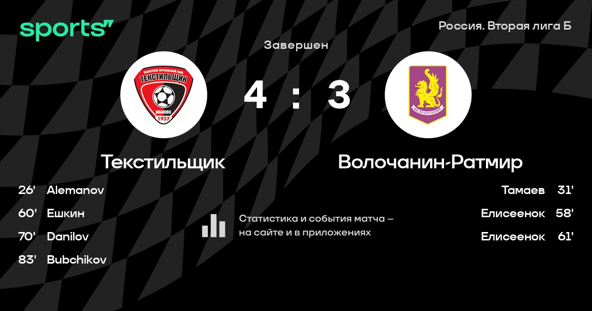 Смирнов - Резнюк, Гафаров, Стренаков, Чванов - Смирнов, Айдемиров, Gorbatov, Расулов - Тамаев, Елисеенок