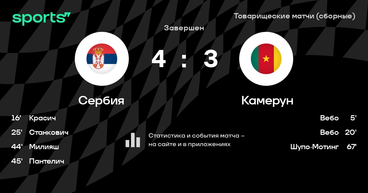 Трансляция Сербия - Камерун
