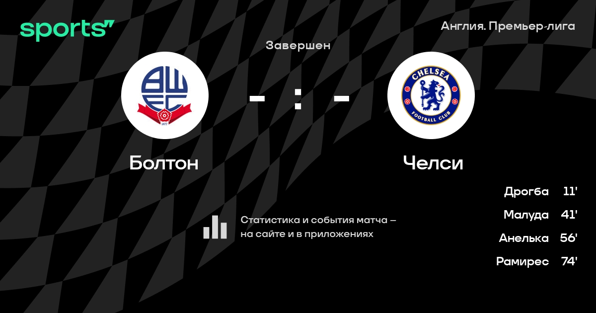 Чех - Терри, Коул, Босингва, Иванович - Рамирес, Малуда, Эссьен, Оби Микел - Анелька, ДрогбаЗапасные: Тернбулл, Брума, Какута, Макикран, Старридж, Калу