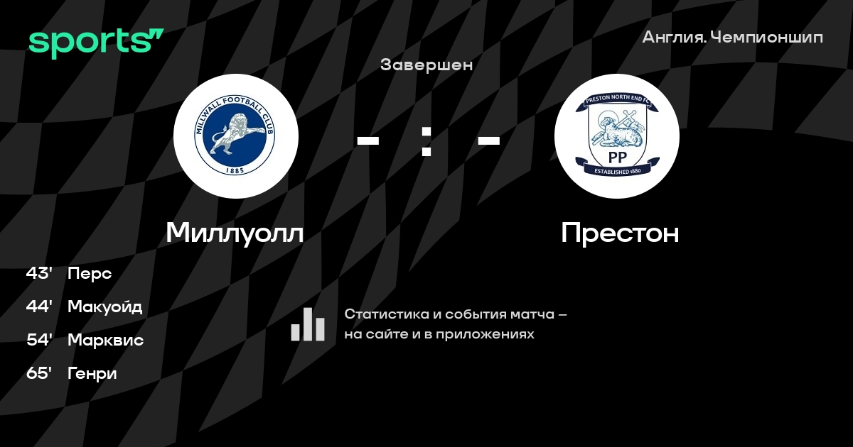Чемпионшип. 43-й тур. «Миллуолл» разгромил «Престон» и другие результаты