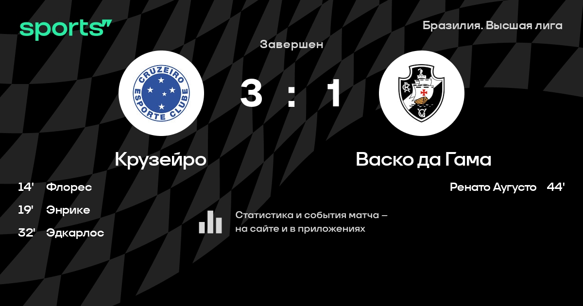 Чемпионат Бразилии. 36-й тур. «Васко да Гама» уступил «Крузейро» и другие результаты