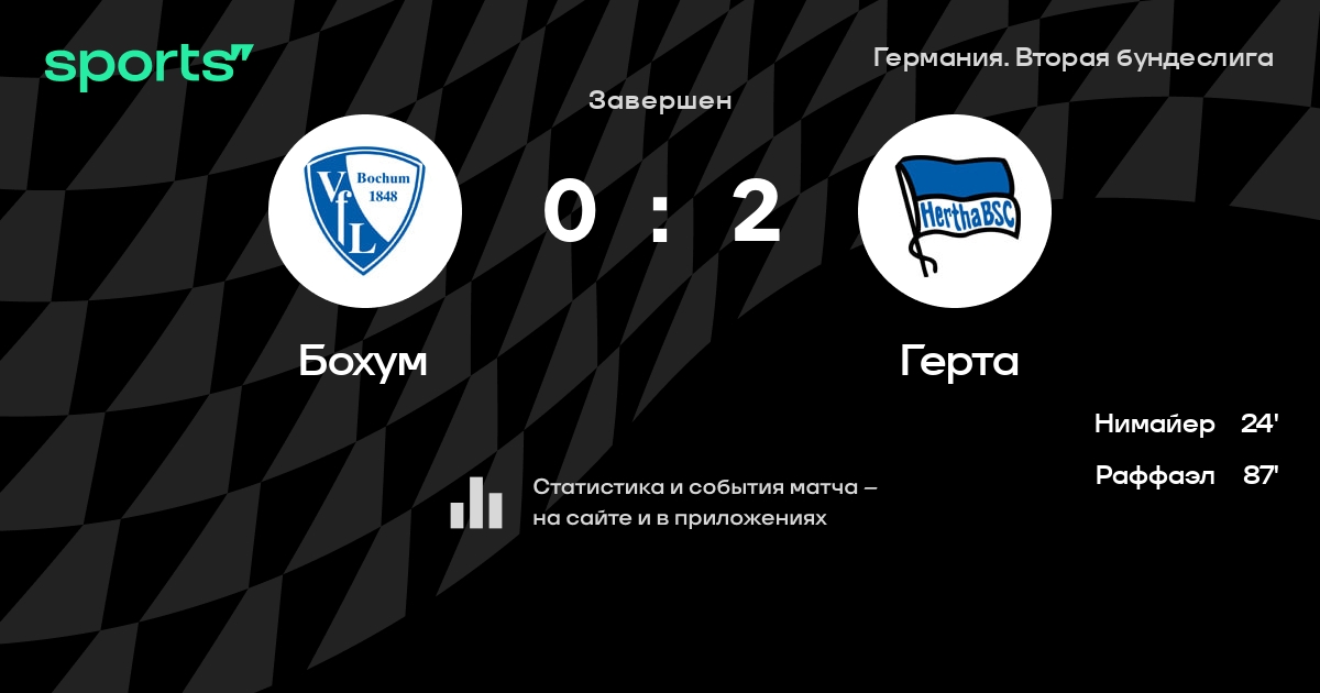 | 3 | Бохум | 34 | 20 | 5 | 9 | 49 | 35 | +14 | 65 | ||