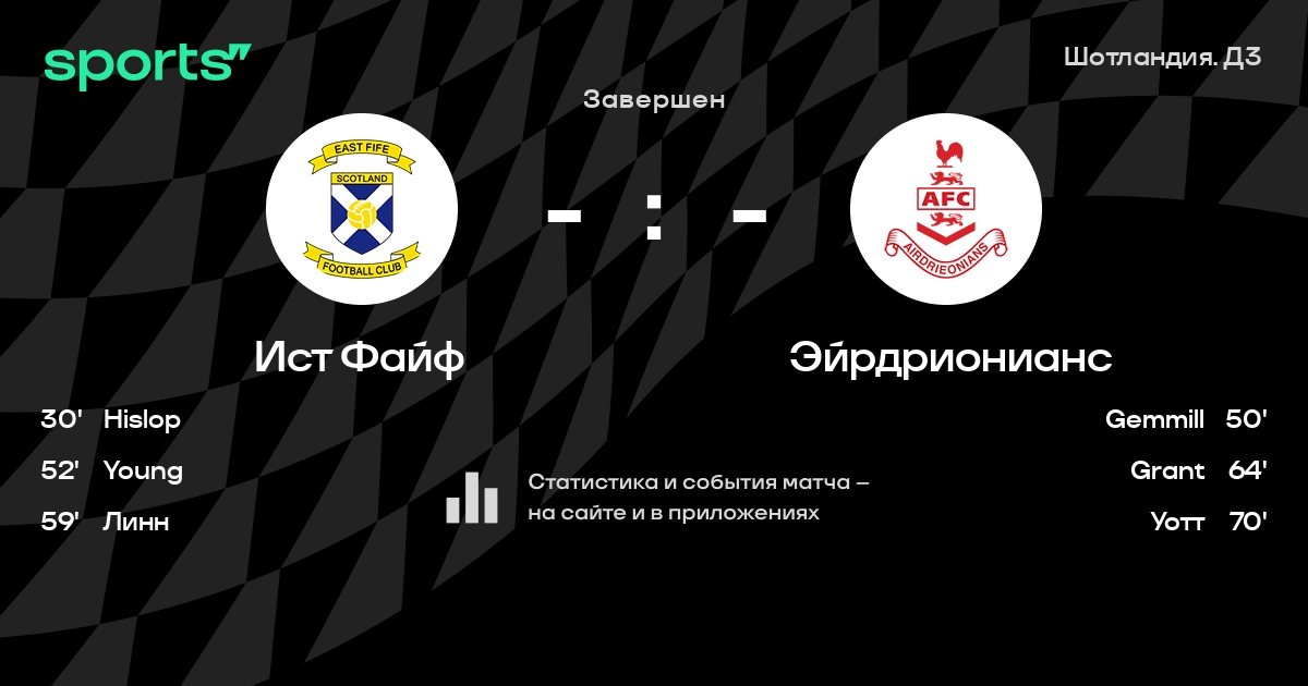 Риджерс - Grant, Bain, Stallard, Lovering, Gibson - Маккорд, Мьюр, Devlin - Gemmill, KeastЗапасные: Corvi, Burns, McGregor, Wallace, Уотт