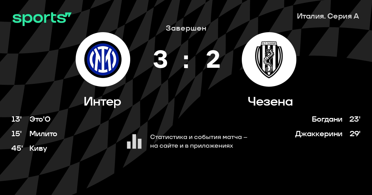 Чемпионат Италии. 16-й тур. Перенесенный матч. «Интер» победил «Чезену»
