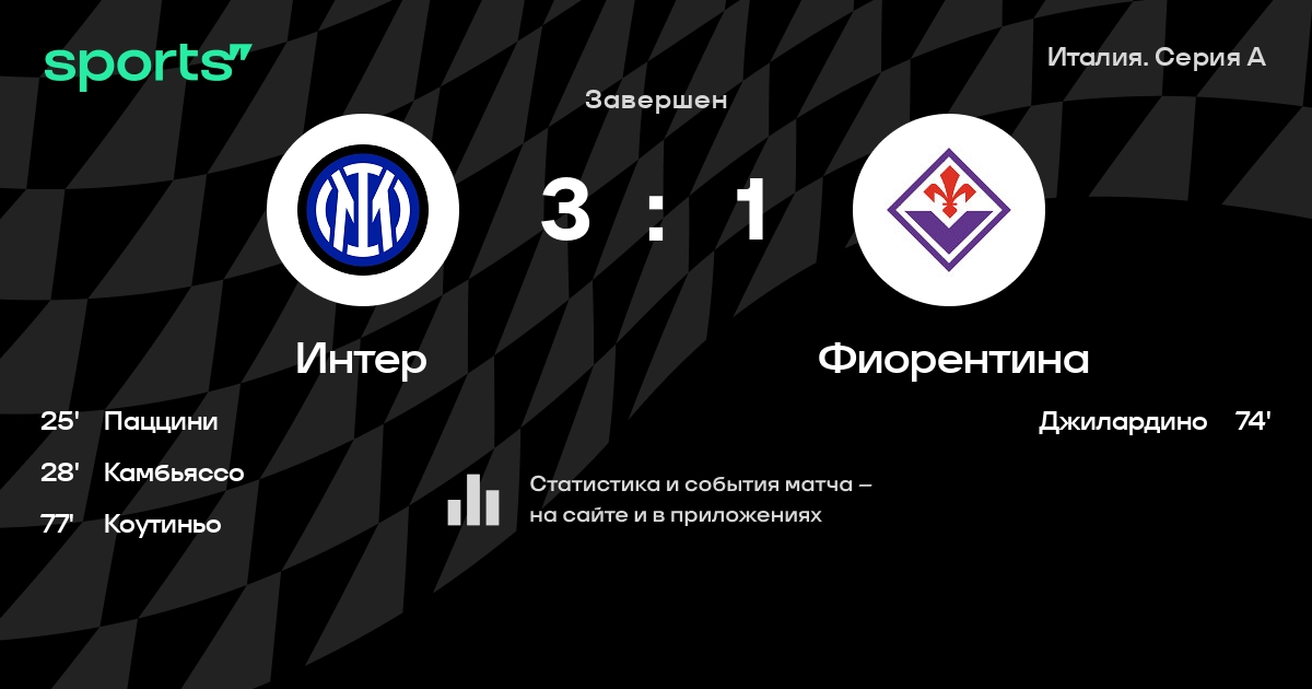 Жулио Сезар - Матерацци, Дзанетти, Раноккия, Киву, Майкон - Харджа, Камбьяссо, Коутиньо - Это'О, ПацциниЗапасные: Кастеллацци, Лусио, Оби, Милито, Пандев