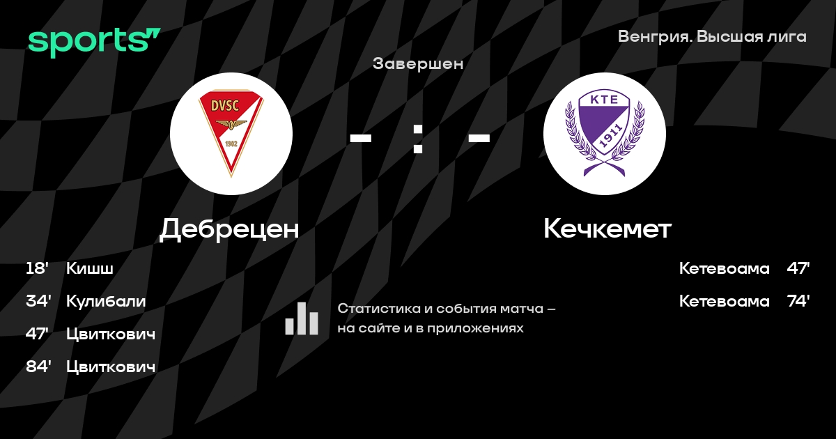 Хольцер - Farkas, Балог, Ламбулич - Эбала, Лицинги, Бори, Савич, Némedi - Csordás, ТоколиЗапасные: Tóth, Gyagya, Моль, Чукич, Кетевоама, Шимон, Dosso